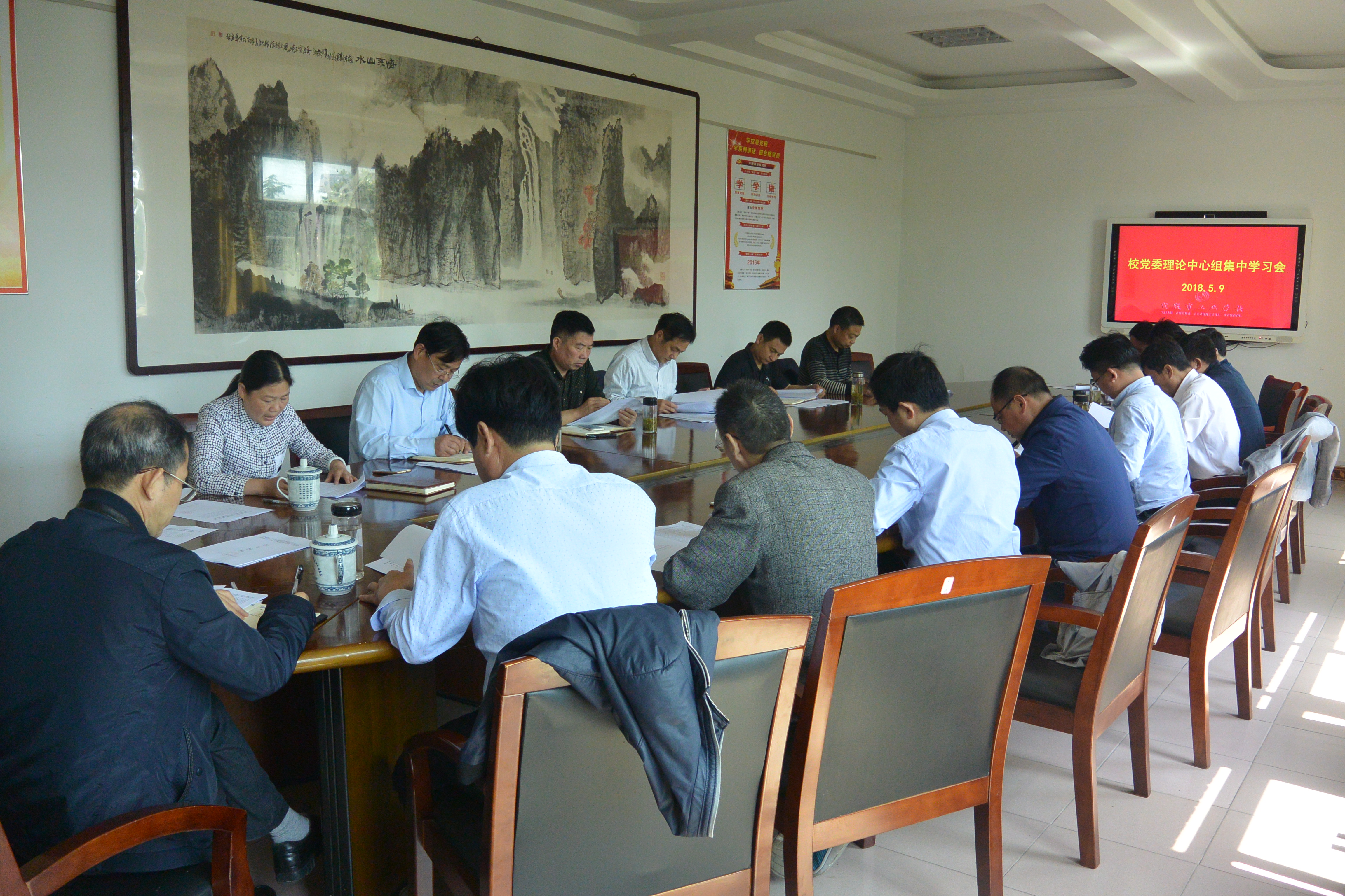 5月9日上午,校党委理论中心组5月份集中学习(扩大)会在太美校区行政楼三楼会议室召开。校理论中心组成员、支部书记、处室负责人参加会议,会议由校党委书记赵伦主持。
