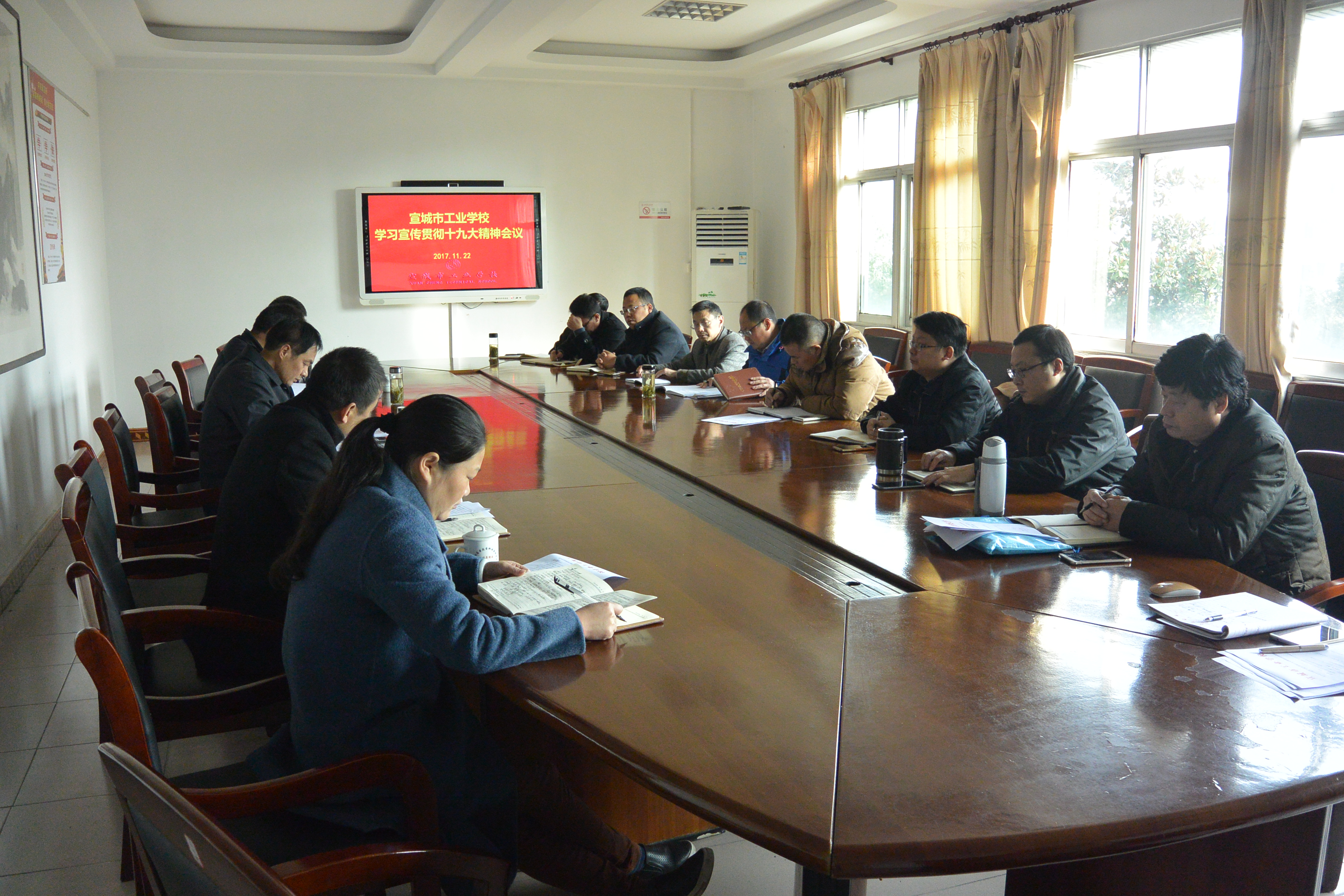 11月22日上午,我校在太美校区三楼会议室召开学习宣传贯彻党的十九大精神动员会,全面传达党的十九大会议情况和主要精神,并就我校学习宣传贯彻党的十九大精神工作进行专题部署。校党委理论中心组成员、各支部书记、各处室负责人参加会议,会议由校党委书记赵伦主持。