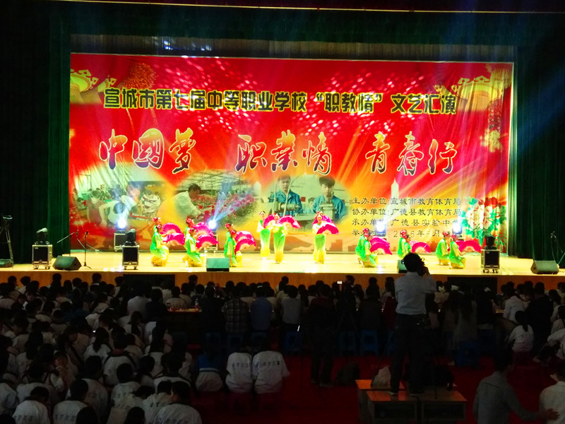 5月13日,宣城市第七届中等职业学校“职教情”文艺汇演活动在广德县实验中学举办。本次大赛由市教体局主办,广德实验中学承办,以“中国梦、职业情、青春行”为主题,我校选送了2个节目参加了此次大赛。
