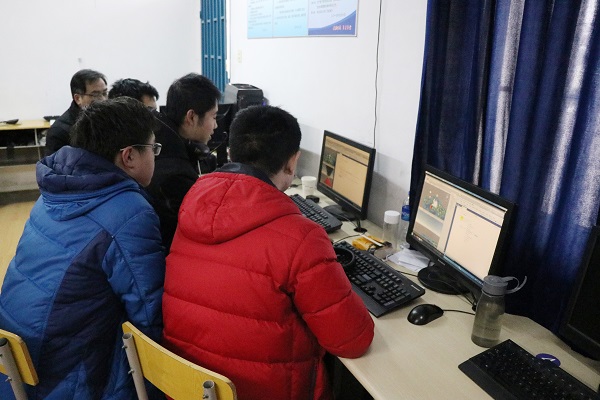 然后,范建平主任、董慧老师和张玮老师陪同段金念先生来到训练现场,观看了选手的训练情况,并针对选手制作的作品,进行点评、提出修改意见,并手把手的教他们进行修改。为了能系统的掌握VR技术, 从2月14日至2月23日,段金念先生对参赛学生和部分计算机老师进行了为期10天的VR技术培训,通过这次培训,相关老师和学生对虚拟技术(VR)已基本掌握,为选拔赛的赛前训练打下了坚实的基础,为选拔赛的顺利过关创造了良好的条件。