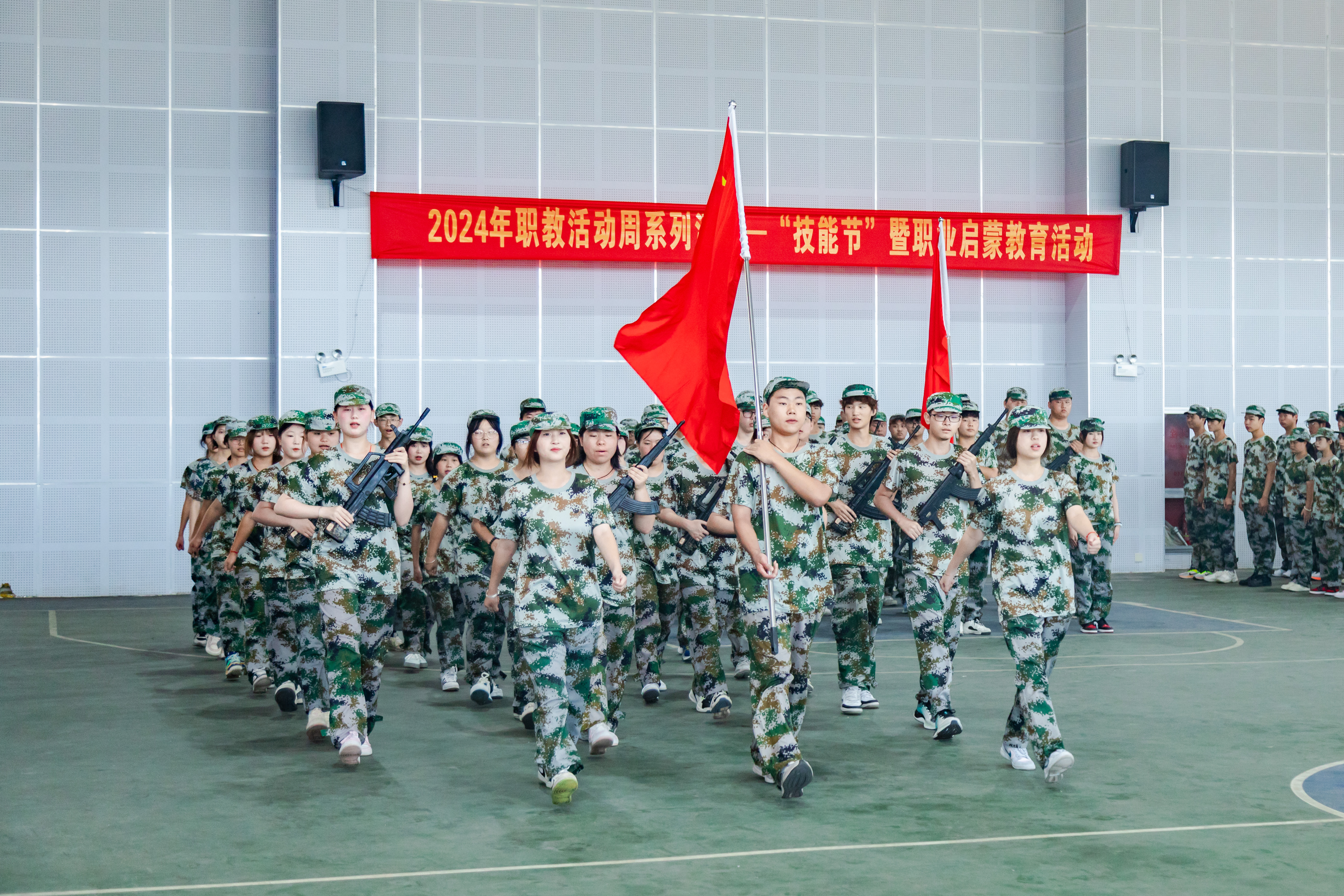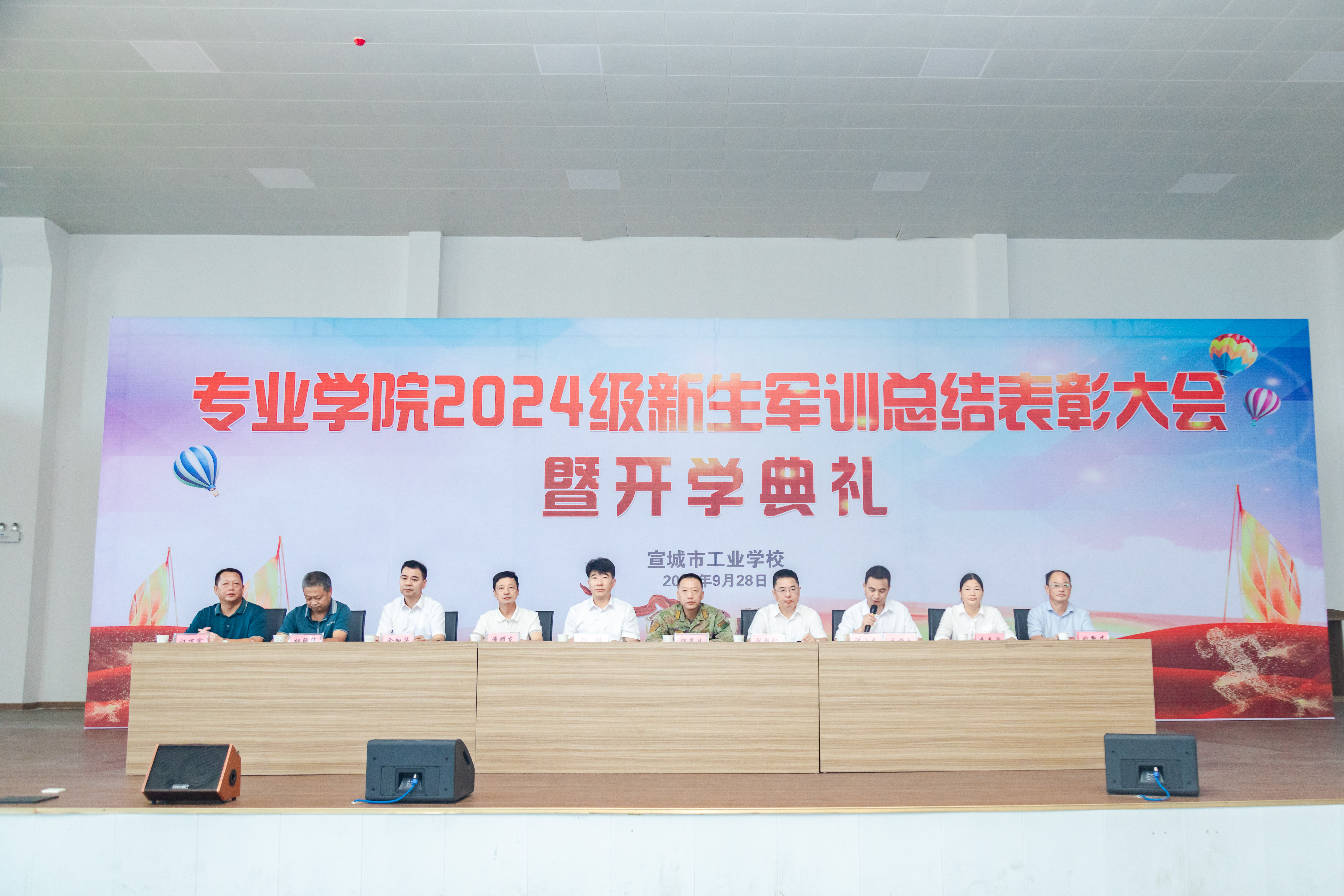 9月28日上午,我校专业学院2024级新生军训总结表彰大会暨开学典礼在学校艺术中心隆重举行。120名新生踏着整齐划一的步伐,以崭新的面貌和昂扬的斗志向学校和社会展示了当代大学生的风采与力量,以自己的实际行动庆祝新中国成立75周年。