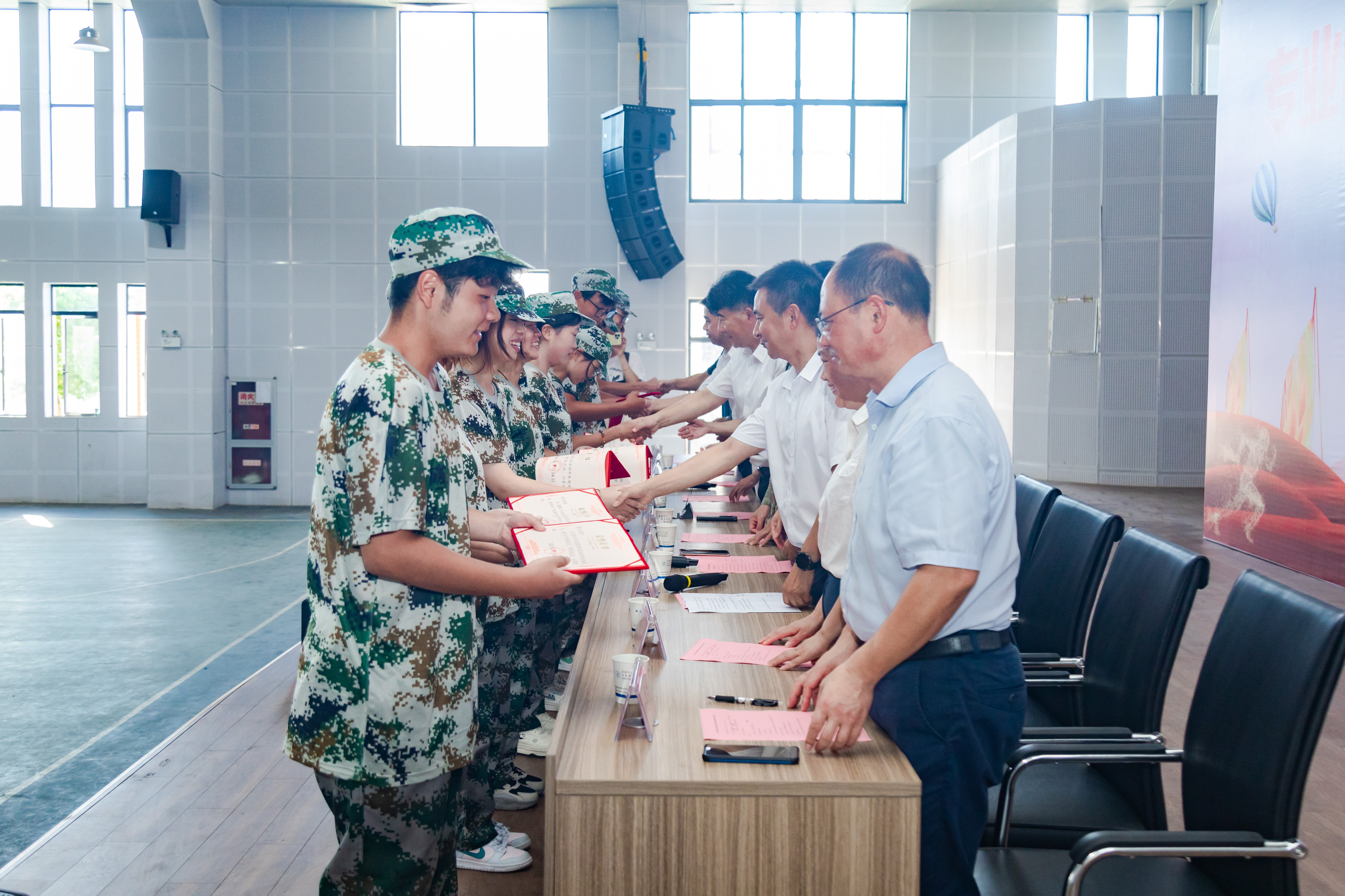 初升的骄阳与渐起的秋风相遇构成了新季节的序章,在这美好的时刻,专业学院的军训汇演也在洪亮的国歌声中缓缓拉开序幕,专业学院2024级新生身着迷彩,饱满精神,严整队形,步伐铿锵,他们气势磅礴,意志坚定,走过主席台,走向新未来。
