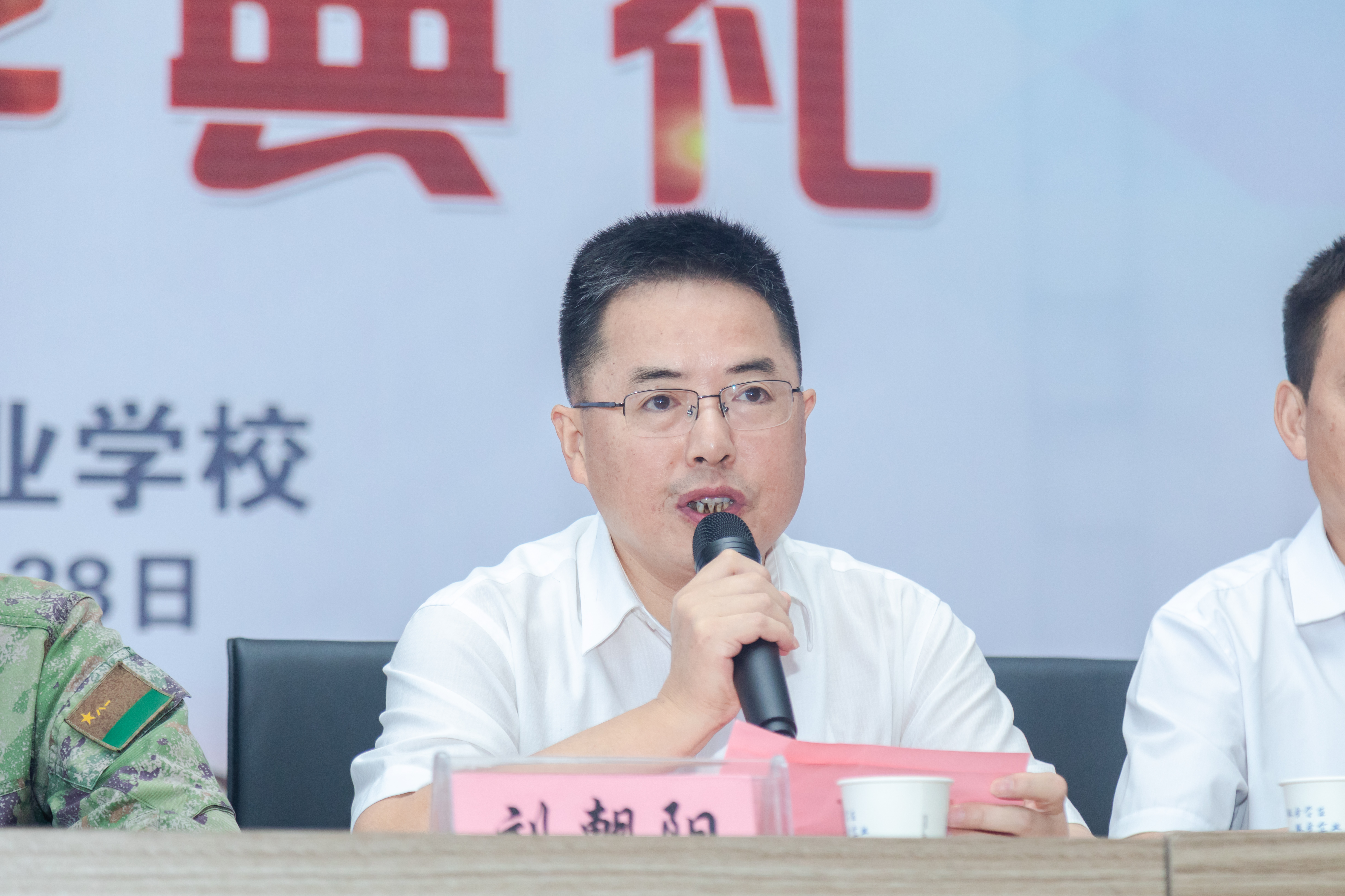 最后,校党委书记刘朝阳作总结讲话。他首先向莅临仪式的各位领导、来宾表示衷心的感谢,向120名高职班的新同学表示最热烈的欢迎,并向参加军训并获得表彰的优秀学员表示热烈的祝贺,并对同学们他提出了希望,希望同学们把军训中学到的优良传统和作风融入到今后的学习和生活中去,继续发扬吃苦耐劳、团结协作的精神,立大志、明大德,做奋发向上的爱国青年,要赓续红色血脉,传承红色基因,树立远大志向,用技能报效祖国,做奋发有为的大专学子。